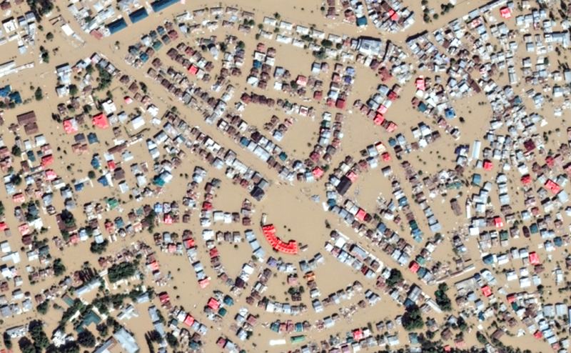 Devastating floods turned cities and towns across Kashmir into archipelagoes of houses. Image Credit: Google Crisis Maps